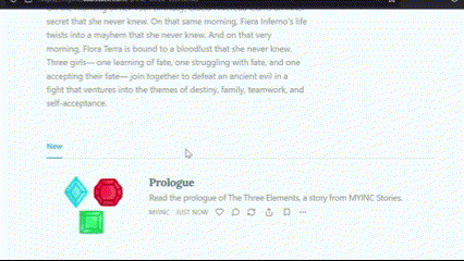 Myinc Stories is a creative and supportive space for anyone, regardless of background, to bond over common interests in novels and provide constructive feedback. Comments are more than welcome! All visitors and subscribers alike should be treated with respect to maintain a positive community.